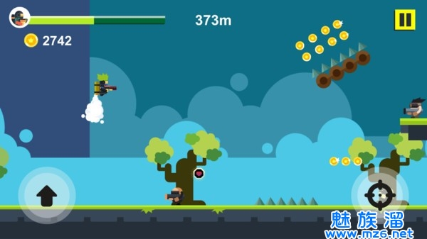 2.灵活跳跃疯狂射击消灭所有敌人,收集金币享受刺激冒险旅程。