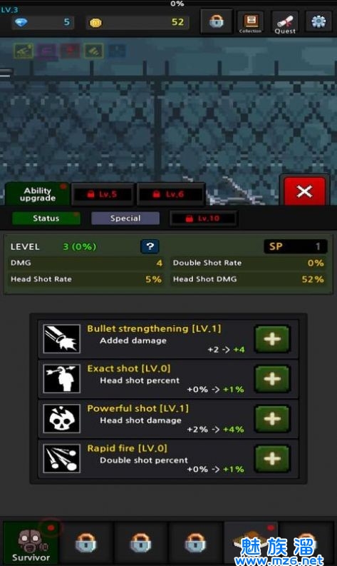 3、金币可以用来升级你的武器,而更高级的武器可以从更高级的僵尸那里获得。
