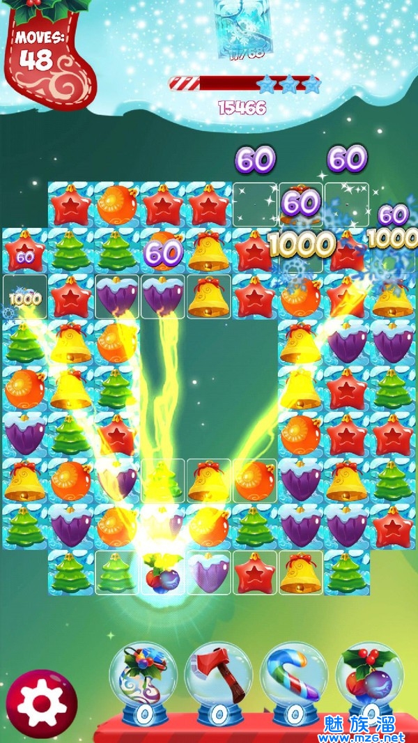 1、画面的设计充满了节日的色彩,让整个游戏变得更有趣,画面越别致消除的乐趣也多;