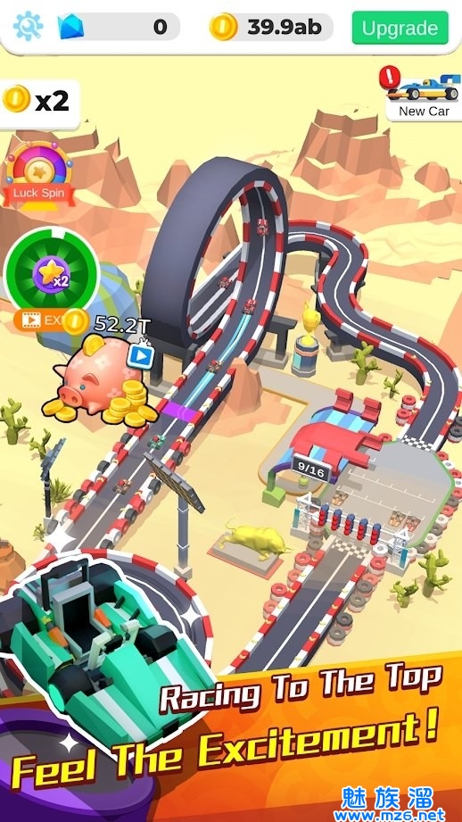 3、不断升级赛车乐园,吸引全世界的赛车手来这里挑战,在过山车赛道上飞驰。
