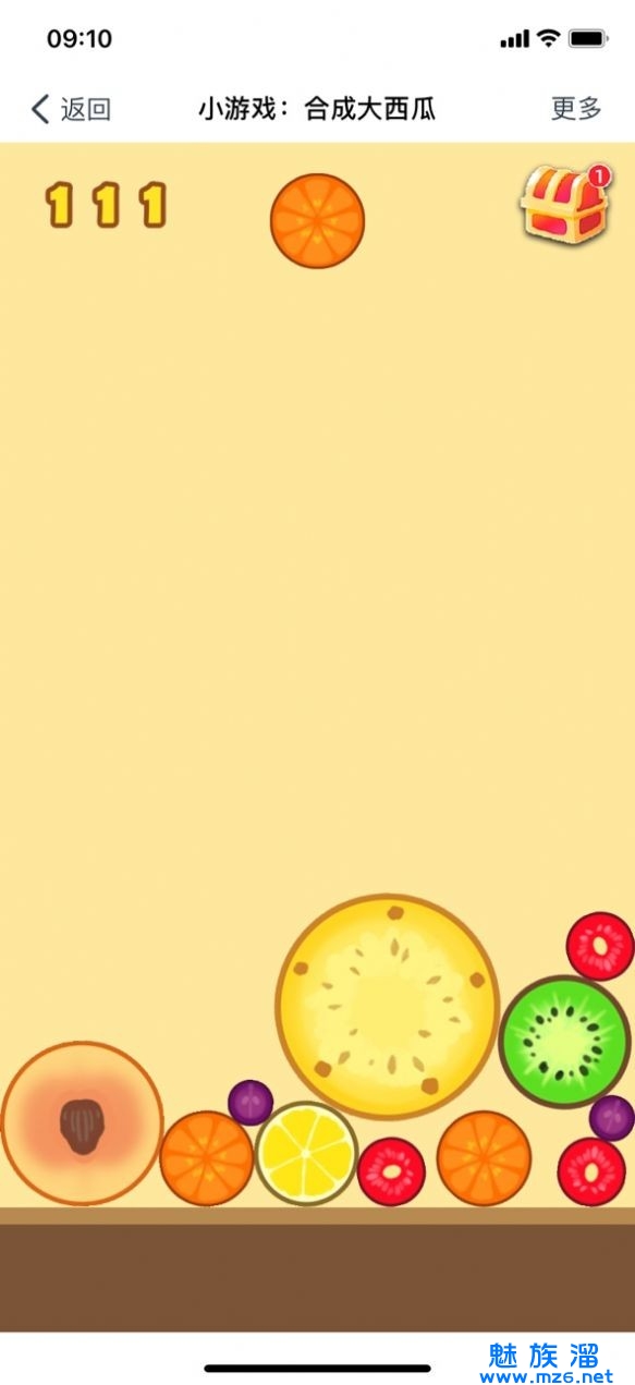 2.一开始玩建议大家有序的排列水果,遵从一个角落水果最大,越往外水果越小的感觉(类似2048),这样容易产生连续合成而节约空间。而且一旦大水果在中间很容易堆太高导致游戏失败。