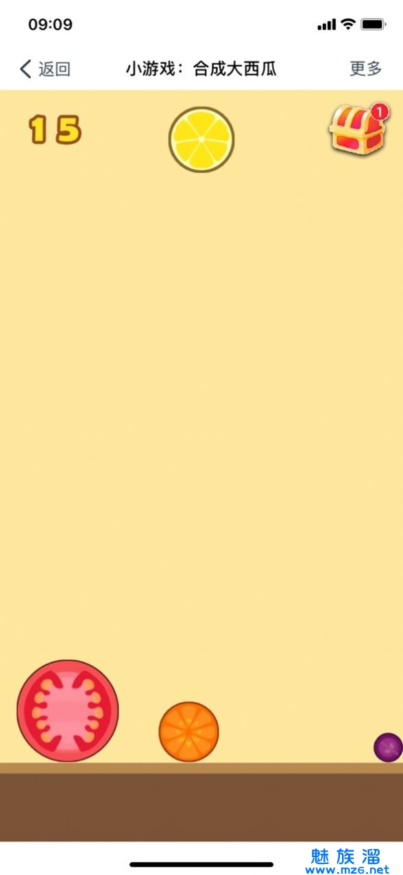 2.游戏有物理碰撞机制,两个相同的水果很近但没有合成,可以用下一个水果把它挤过去。也可以使用反射原理让自己丢出去的水果改变方向到达难以直接垂直下落的地方,即利用墙和其它的水果改变发射方向(适合插空用),因为游戏机制是碰到一下就合成,注意放的时候不要擦边别的球。
