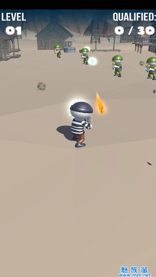 1、操作非常的简单,滑动屏幕就可以去进行移动角色进行躲避,精准的射击所有的对手;