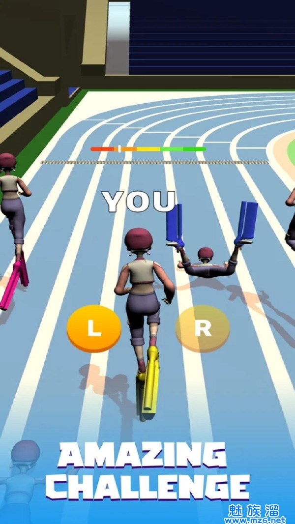 2、画面看起来非常的简洁,玩家可以非常专心的去进行挑战,比赛的时候千万不要摔倒哦;