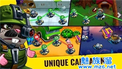 2:超过100个不同对手的独特战役,随着关卡的进行,收集硬币以解锁新武器,不断的英雄升级和装备升级,每个级别的奖励都不同;