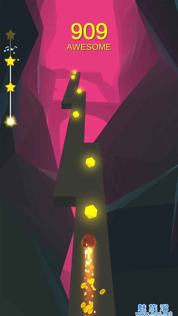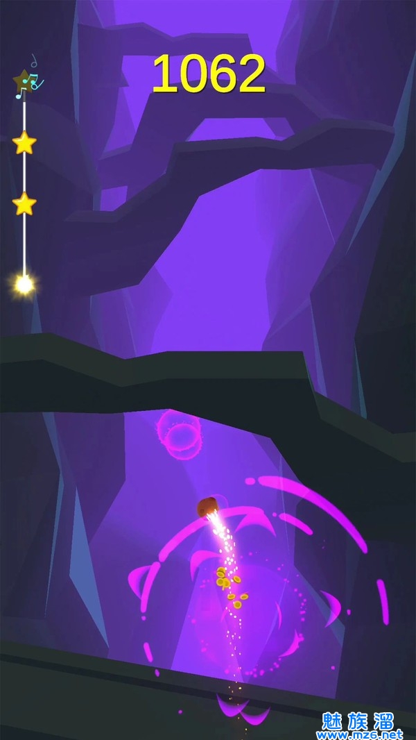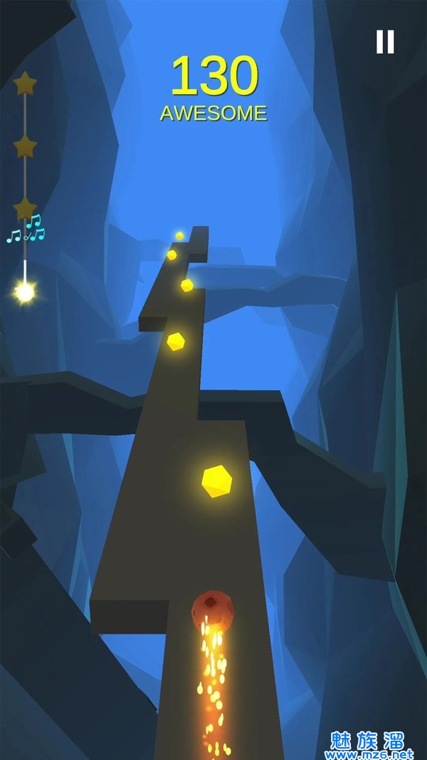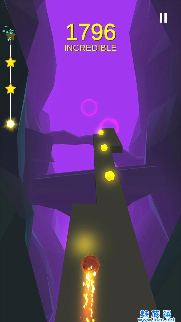 1、游戏里有不同音乐的节奏,需要我们操作小球跟上节奏,当然路上不可能一帆风顺;