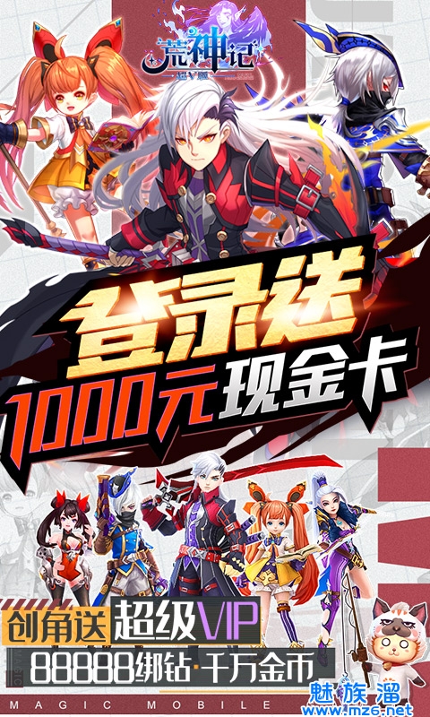 《荒神记(送毕业神装)》是一款以魔幻二次元为背景的MMORPG手游。酷炫的技能特效,还有绚丽的变身特效,给予你视觉打击;四种职业:剑斗士、潜伏者、枪术师、元素使,多种玩法等你来体验。上线就送千元现金卡、超级VIP、88888绑钻、千万金币跟海量材料礼包,签到送最强毕业神装,超强福利等你来拿。每天无限抽现金卡,激活累充活动,奖励拿到手软。