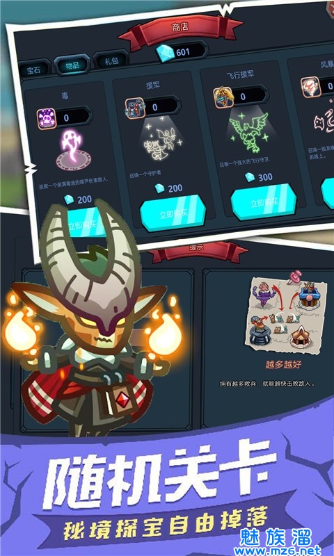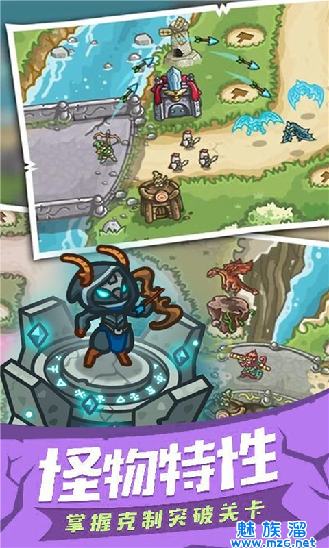 4、游戏中玩家需要在道路的两侧购置各种防御武器,抵御敌人的侵犯,保卫海岛。防御武器分为近战和远战攻击两种,