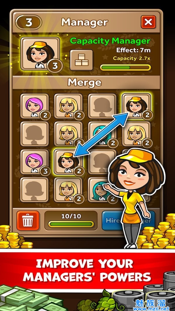 1、合并经理以提高他们的技能,开始探险以获得更多免费助推器。