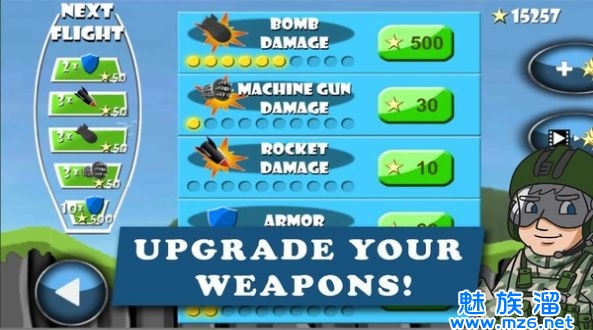 3、战斗机的等级越高你的性能也越强。飞机被强化之后的实力也变强。防御力和攻击力很高。