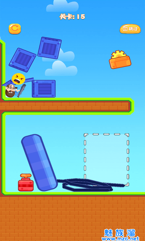 一个非常有趣的休闲游戏。在这个游戏中,场景非常机智和神奇,操作简单易用,操作纯净指尖,您可以感受到超高自由度的探索和冒险体验。玩家需要根据关卡中的情况来画出合适的图形,从而让机关可以成功的砸晕老头。游戏包含了丰富的关卡在内,大家可以自由的挑战。该游戏完全测试您的反应速度,有兴趣的朋友必须来下载并尝试!