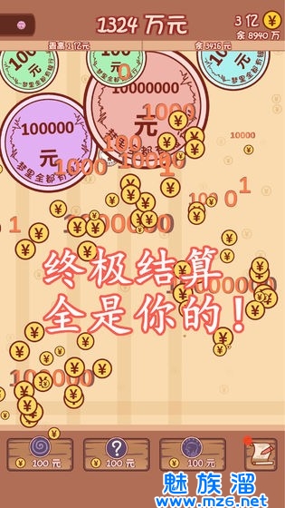 2、动动手指轻松赚到1000万,距离一亿并不远,继续挑战,刷新你的财富记录,满屏掉金钱,这些全是你的。