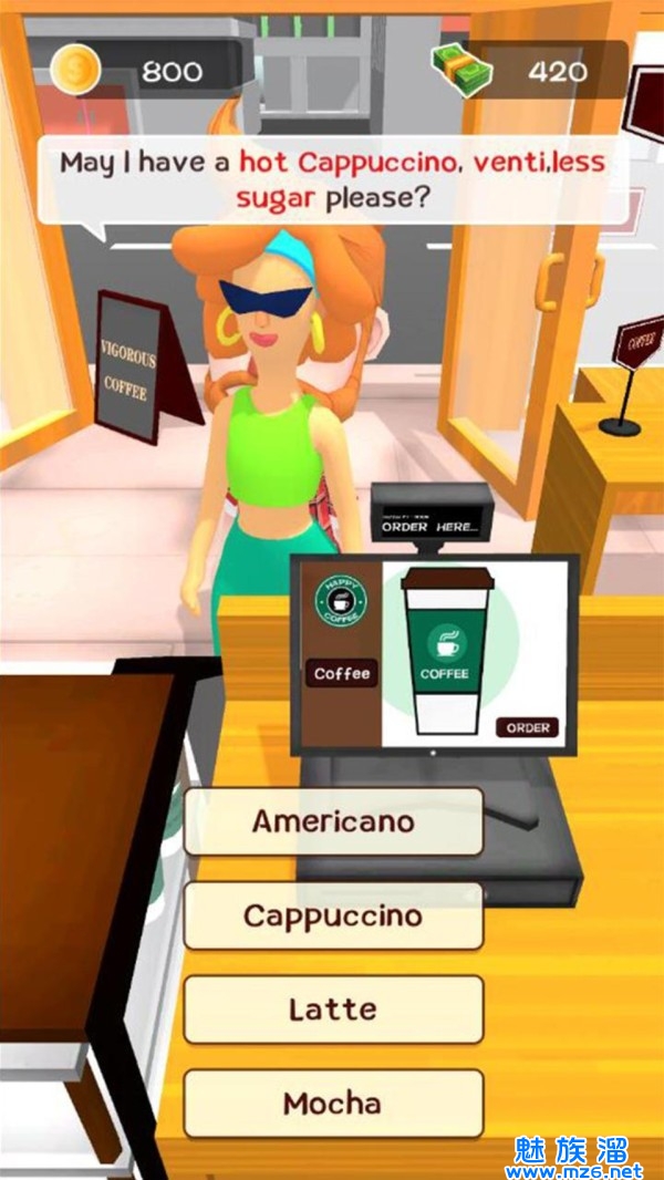 2.游戏玩法简单易学,易于掌握游戏的乐趣和技巧,按照游戏步骤冲泡咖啡,并满足客户的要求。