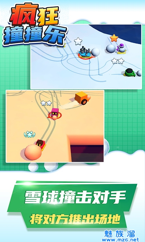 疯狂撞撞乐是一款雪地幸存多人堆雪球大乱斗,多人休闲竞技生存类游戏,游戏玩法简单,操作自己的企鹅雪橇堆雪球。不断的移动,雪橇推动的雪球会不断的滚大,命中后能撞飞别人,把他们打出冰面外即可淘汰对手,生存到最后获得胜利。