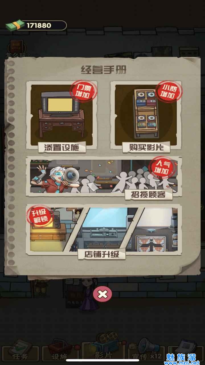 3、游戏宗旨以服务于顾客为主,自己做老板,成为电影行业的佼佼者。