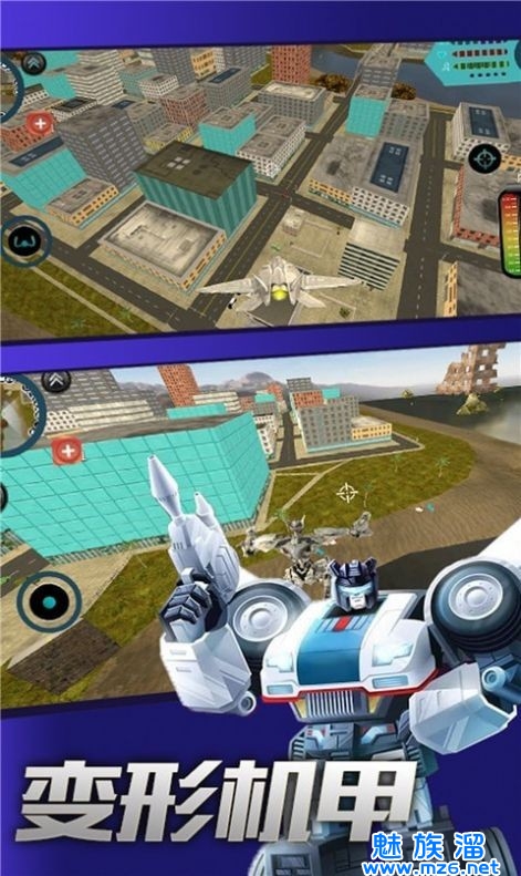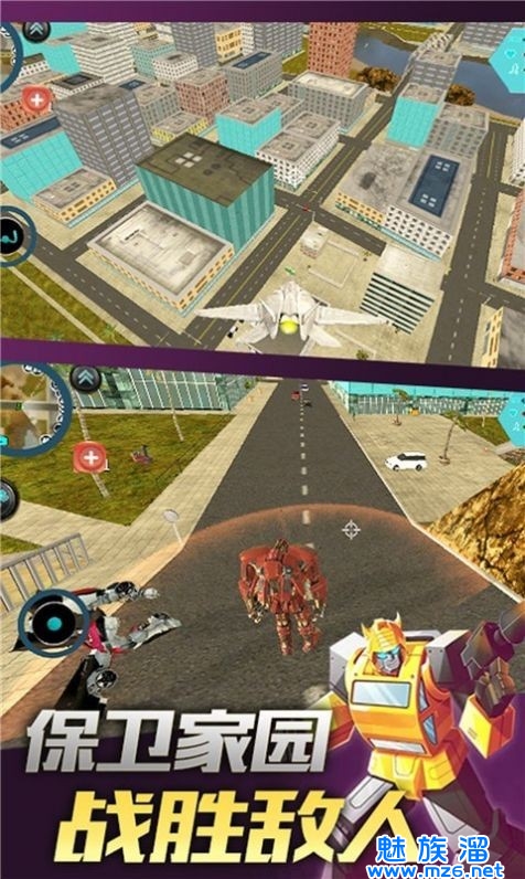 3.阻止他们对城市进行各种破坏,机甲英雄还能变化各种形态,成功的守护城市中所有的人就能获取更多的奖励。