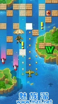 3、到达关卡的终点,在路上清楚所有的方块障碍,自由射击享受空战的激情,左右移动随意控制。