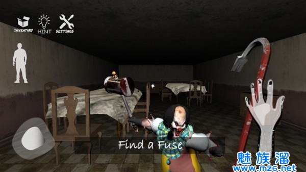 2、无辜孩子惨遭绑架,深入公寓智斗小丑,玩家需要救出被绑架的孩子,找到钥匙,和小丑斗智斗勇,最后逃出房子。