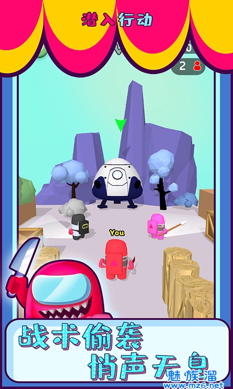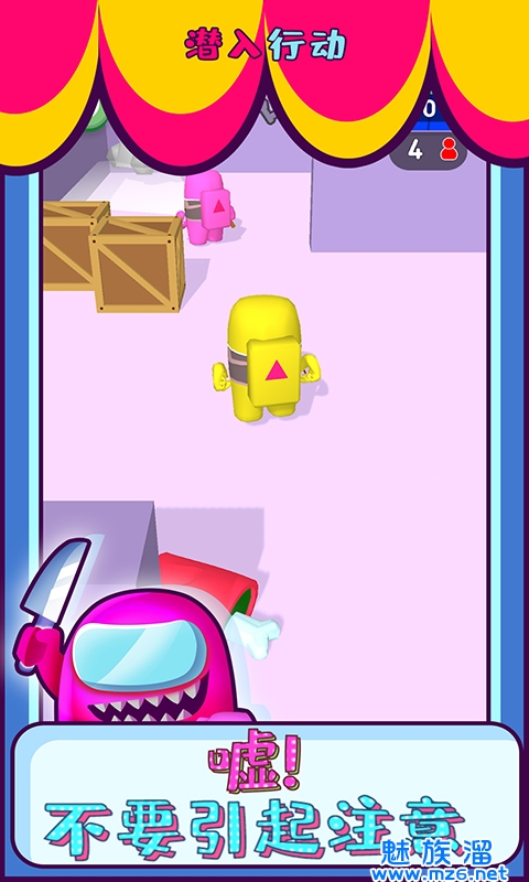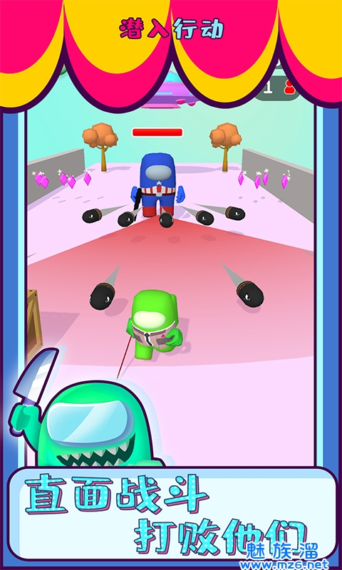 潜入行动是一款玩起来超级欢乐有趣的休闲游戏,现在要借用在我们之间游戏的角色模型,你可以成为最优秀的暗杀大师,寻找游戏之中最精彩的内鬼,想办法来小心的操作所有的角色来快速的完成攻击,现在就放倒游戏里所有的人员,这样超级可爱的卡通角色显得超级有趣,喜欢游戏的就来下载吧!