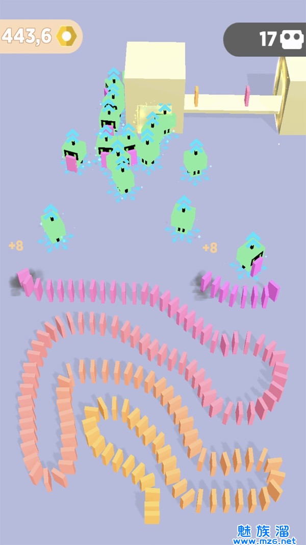 2、灵活操作球球在游戏中破坏,尽可能撞到更多的多米诺,这样会带来更多的得分。