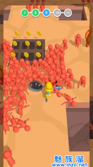 3、当你完成关卡就能获得一定得游戏奖励,会有跟中不同颜色小人要推倒。