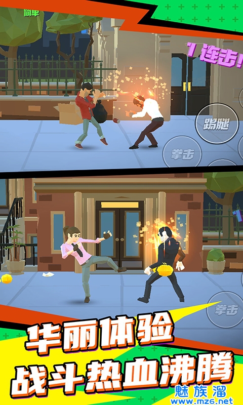 非常强烈的打击画面,以及种类多样的地图。在不同的地图中有箱子,箱子可掉落金币甚至武器,快来加入我们一起痛快格斗之战吧!