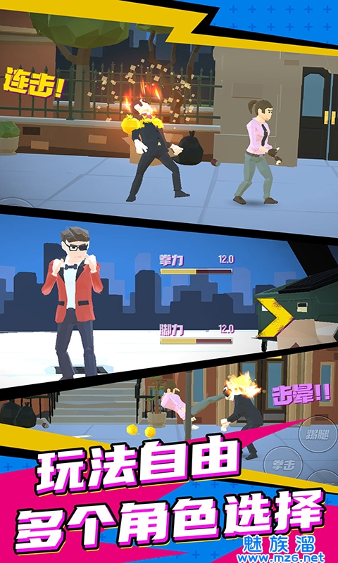 人物可通过金币升级自己的属性,生命、拳力、武器技能、脚力。可通过强化自己的属性来提高自己的战力。非常要注意的,场景两侧会有敌人靠近,可先击溃一侧的敌人,不然被敌人夹击会很难生存。
