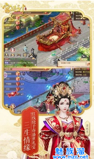 1、体验最真实的宫廷生活,并且游戏融入了非常丰富的古风服装和剧情玩法,扮演一个新的宫廷女郎,成为后宫的主人。