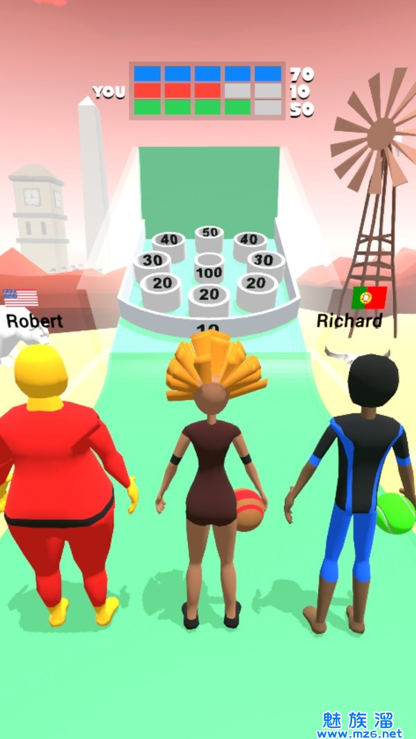 1.你的目标很简单,就是一次性甩动保龄球将所有的障碍物全部击倒,以此来获得更高分数。