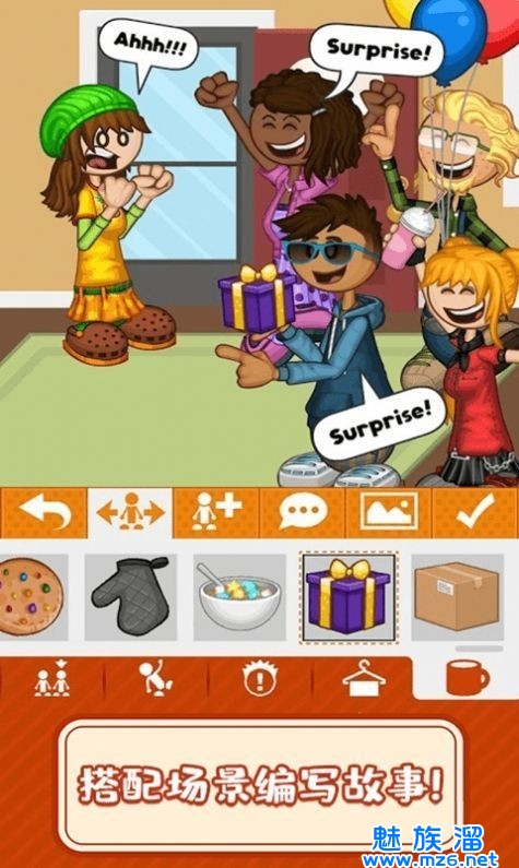 1、一个关于美食的故事,玩家自定义编辑角色、场景,将了一个有趣的事情。