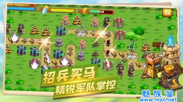2、升级防御塔之后攻击的特效也更震撼,画面越炫酷给你的战斗欢乐也多;
