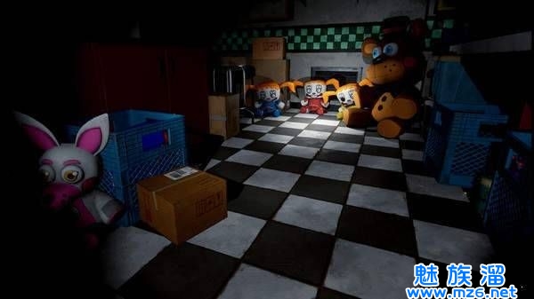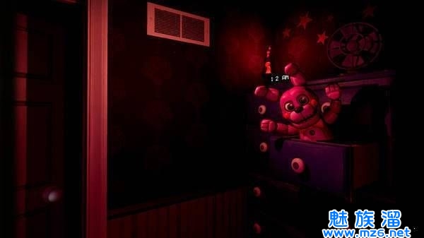 7、整个夜晚这三只玩具随时有可能暴动,玩家需要不断查看通风口和正门,并及时去11号房给八音盒上发条。