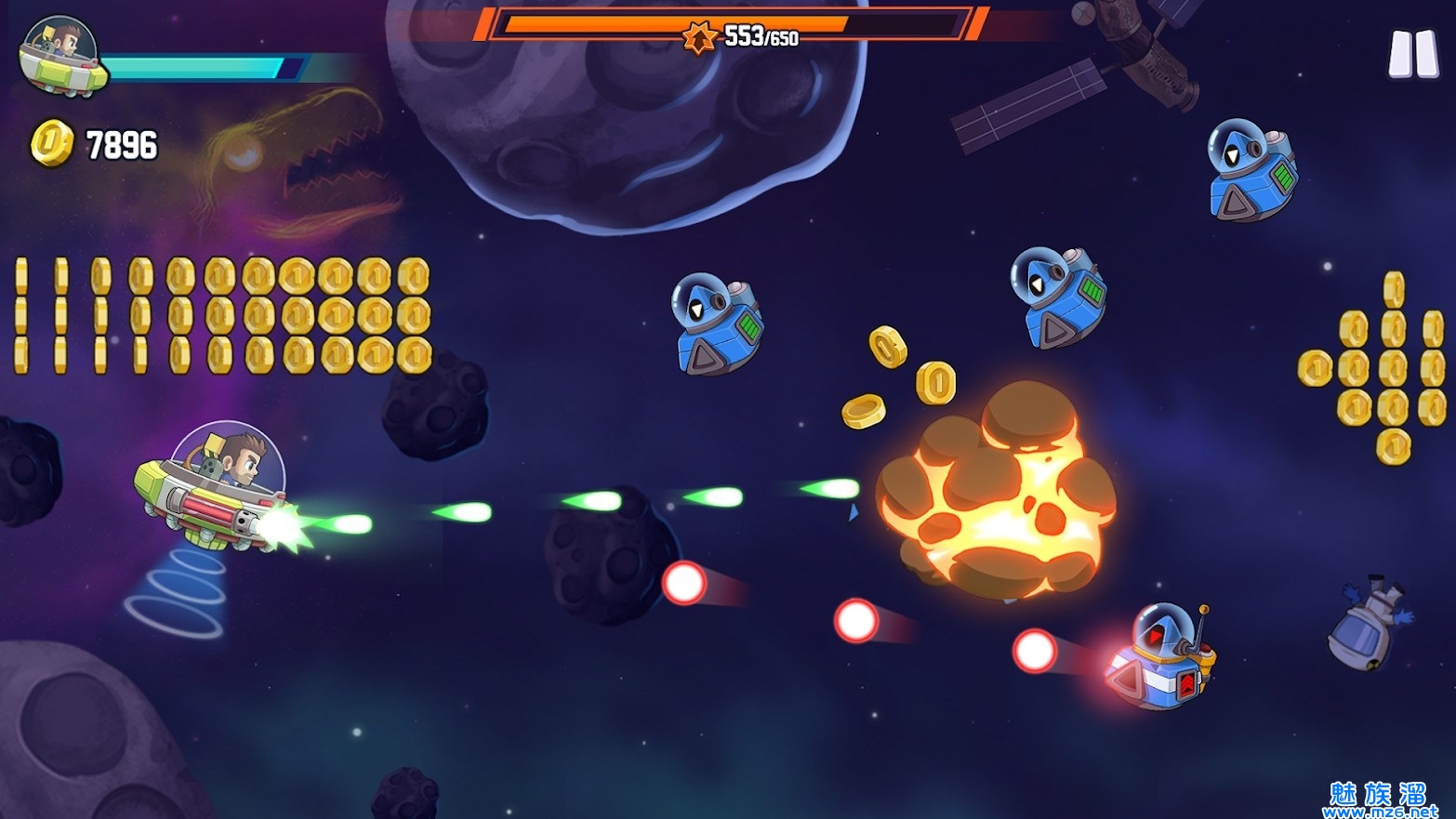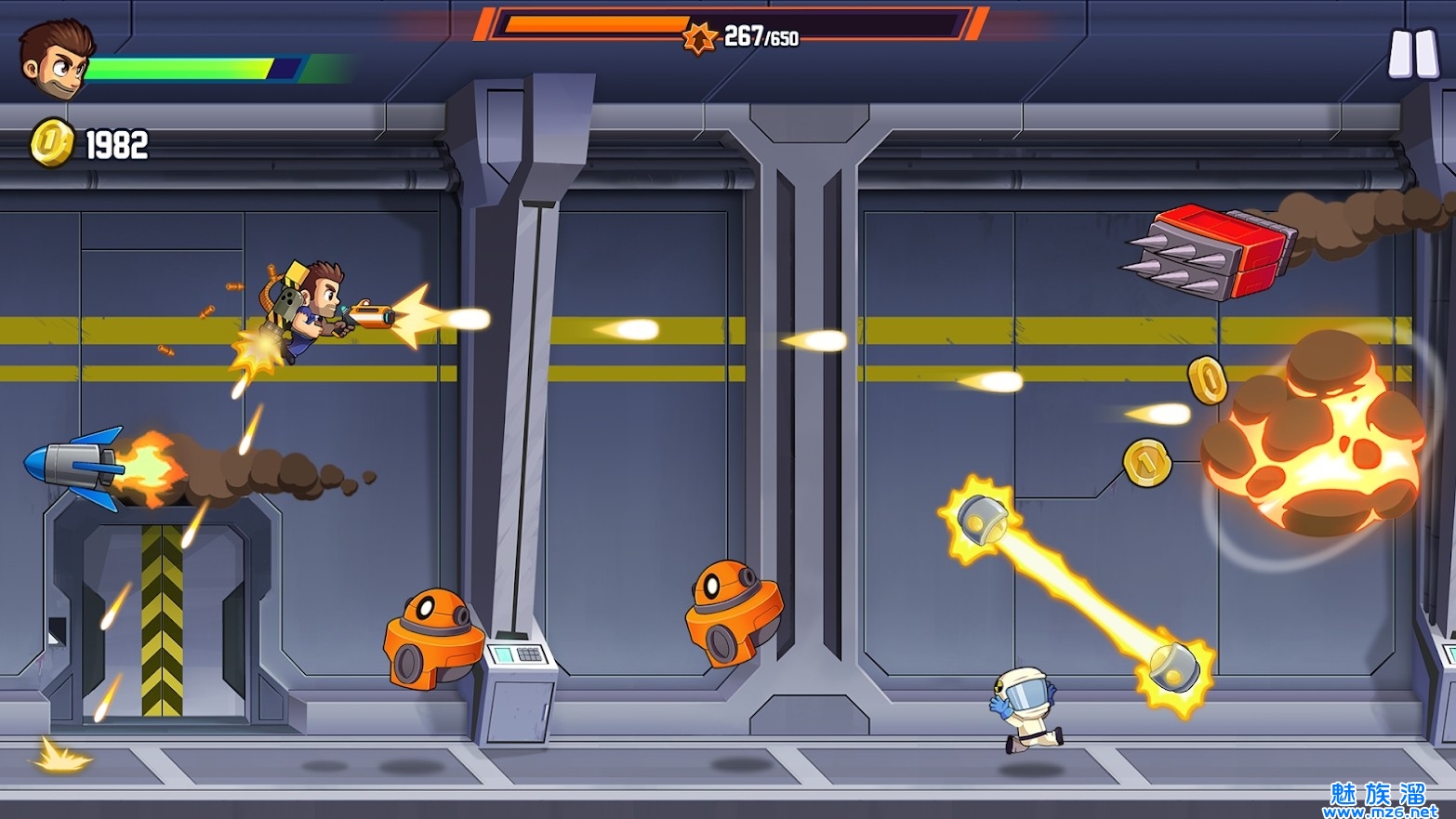 3.不断赚取收集金币,还能更换各种全新的喷气背包和多种有趣的道具。