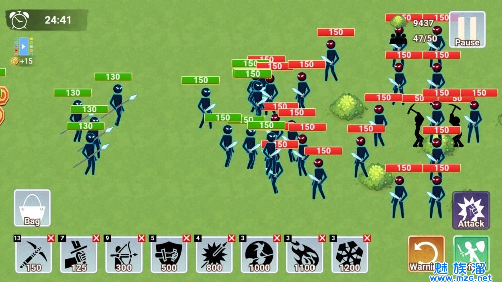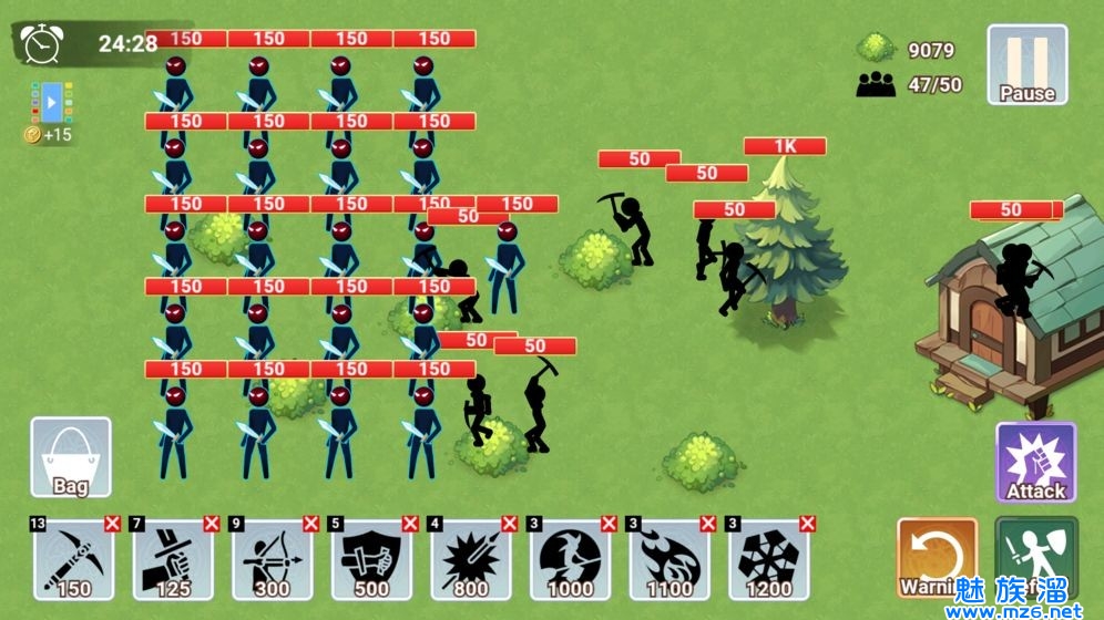 1、通过自己的操作来培养忠实的火柴人战士一起来守护我们的王国,面对敌人疯狂的进攻也不要畏惧。