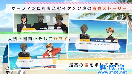 1、以冲浪为主题的面向女性的冒险游戏。原始的爱情故事,八个不同的冲浪青年正在等待您的指导。
