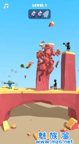 1、玩家在这里可以利用收集的火箭筒来进行打击敌人,只要玩家可以用炮弹击中敌人就能快速的取得省级。