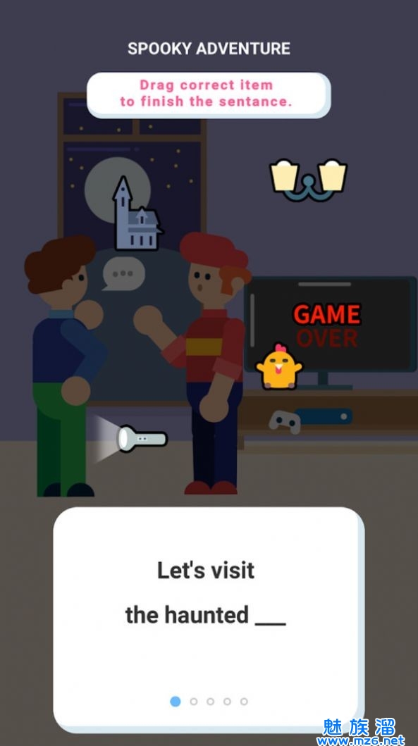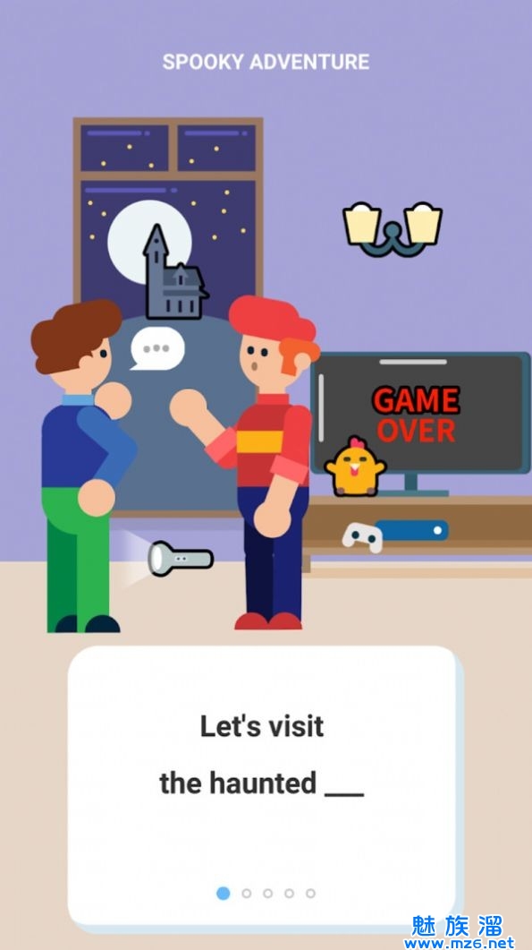 1.游戏中有很多场景,每个场景都是卡通风格的图片。