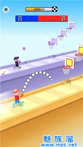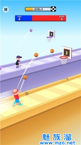 爆裂篮球官方版是一款趣味的跑酷投篮的玩法,在你跑酷的道路当中会出现各种的篮筐来让你去进行投篮,不断的去刷新自己的闯关分数,顺利的获得最终的比赛胜利,全新的挑战任务都将由你顺利完成,快来下载吧!