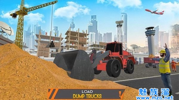 2.在现场装载和卸载建筑材料,流畅轻松控制游戏,建设城市最大的机场。