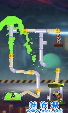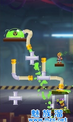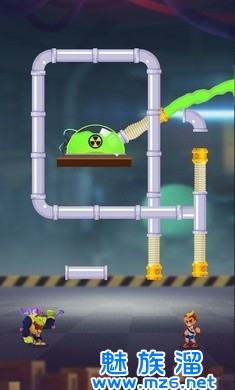 1、毒气在最上面,标记有骷髅,游戏里的管道可以自由组合,拼接。