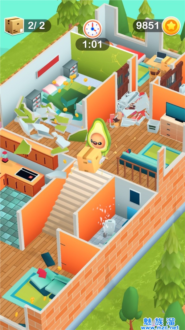 1、在游戏里破坏环境,打破墙壁,搬家具,体验搬家的乐趣。