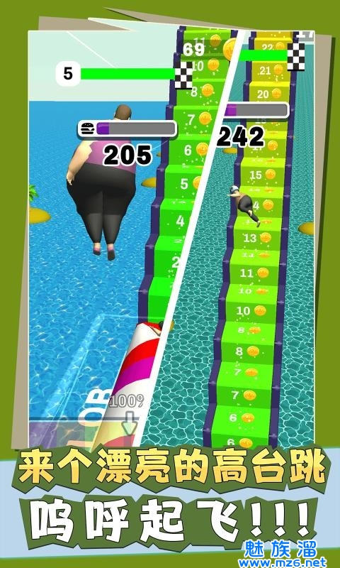 3、专属的胖子推墙跑酷游戏震撼来袭,躲避危险吃掉更多的道具来冲冲冲吧。