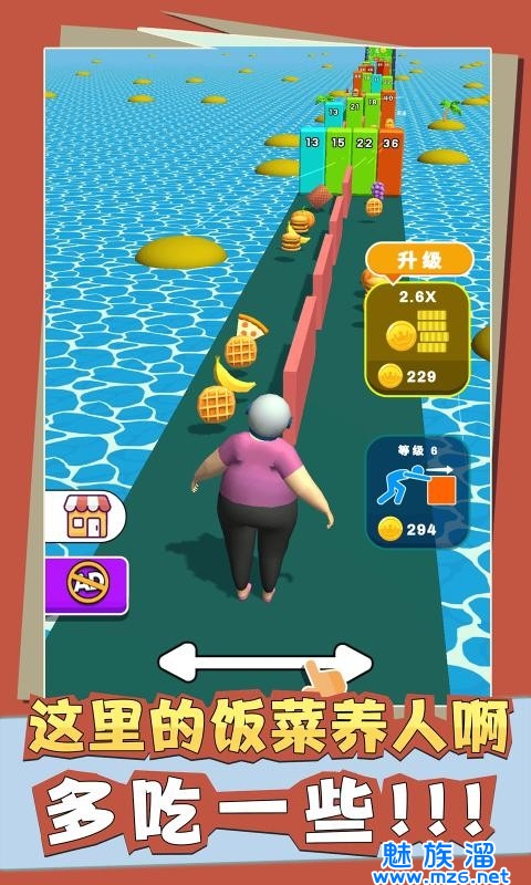 3、背景逻辑很真实,吃得越多角色就会越胖,以至于后面都走不动了。