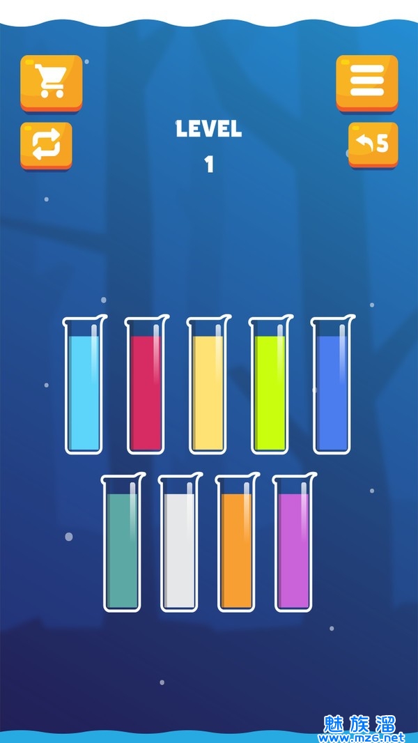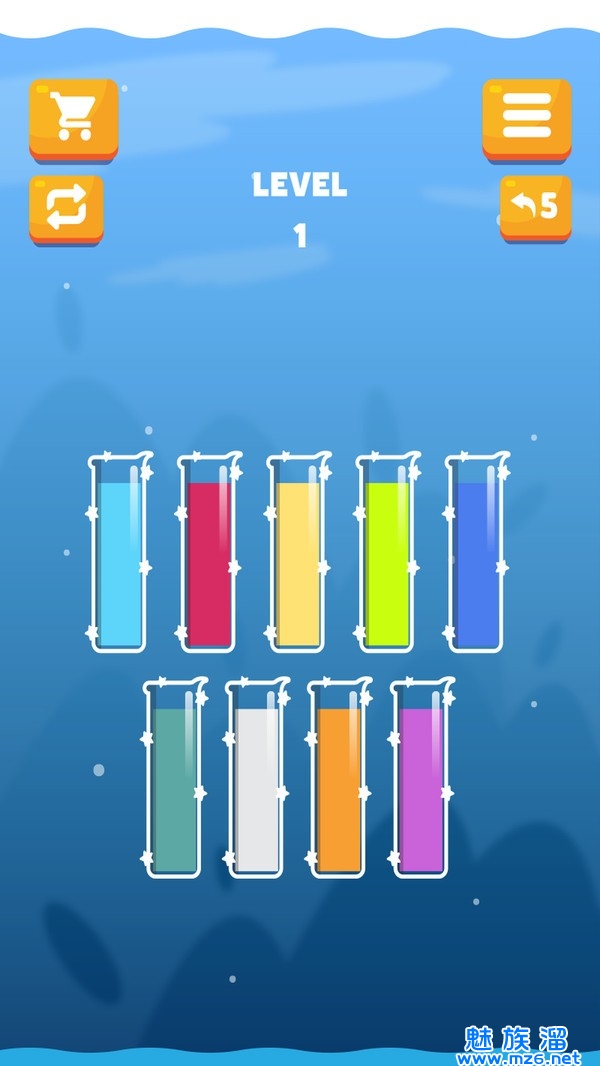 4.关卡难度越大,不同颜色的液体越多,难度也就越大。