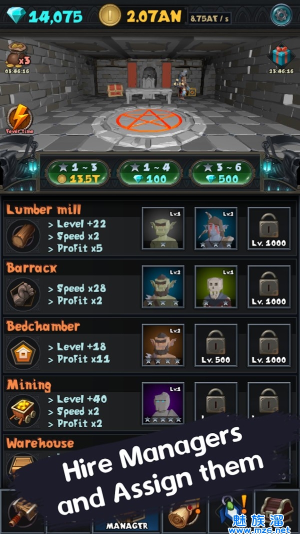 2.通过对地牢的建设装修然后再高价的售卖来给自己带来更多的利润,玩法方面也是会更加的有趣;