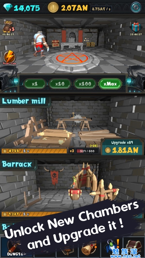 1.扩建自己的地牢来获得更多收获利润的机会,还可以完成任务来解锁新的地区,更可以对其展开新的建设;