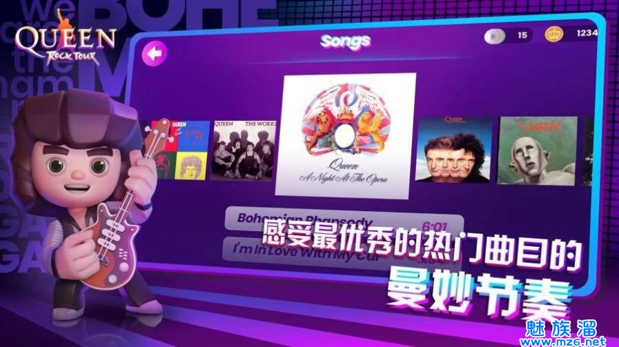 皇后乐队摇滚传奇,一款音乐节奏类手机游戏,在皇后乐队摇滚传奇下载中,玩家们将体验超多卡通画面的游戏玩法。各种风格的音乐带给你不一样的游戏体验感。在这里依靠自己的节奏感创造出超多传说故事,还能利用闯关获取的金币兑换相应的服饰装扮,感兴趣的小伙伴们快来下载亲自体验一下吧!