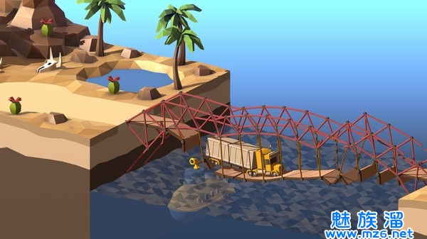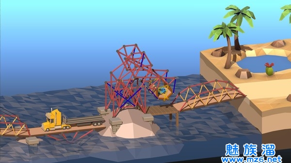 3、《Poly Bridge》是独立开发团队Dry Cactus旗下的作品,是一款益智模拟类游戏。玩家必须制作一座或多座桥来让车辆过河,看似简单但要让桥能支撑车辆的重量并不是一件容易的事。