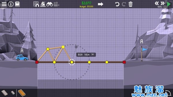 4、除此之外也会有其他要素会前来考验玩家,让这款游戏变得相当具挑战性,也进而吸引了不少奇才前来尝试,打造出相当荒谬或有趣的桥。