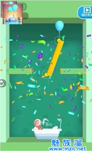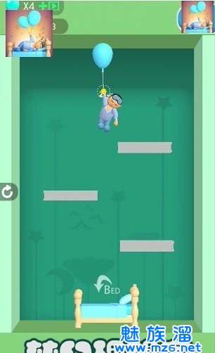 2、在这里玩家可以轻轻松松的进行闯关冒险,让小人儿准确的掉落到床上,就能闯关成功。